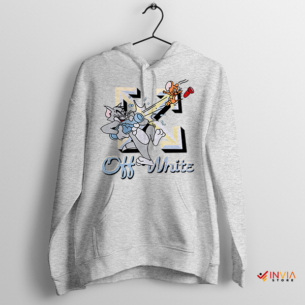 Funny Tom And Jerry Cat Off White Sport Grey Hoodie