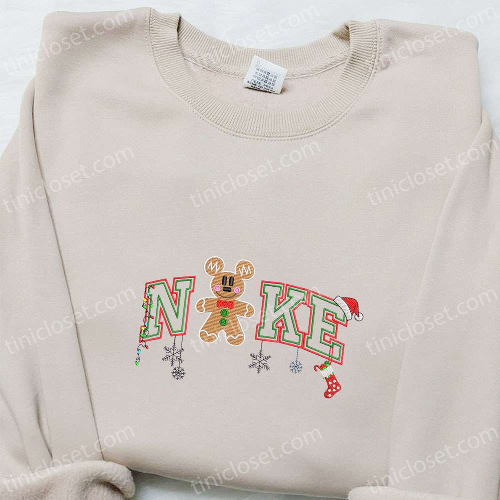 Gingerbread Mickey Xmas X Nike Embroidered Shirt, Disney Characters Embroidered Hoodie, Best Christmas Gifts For Family