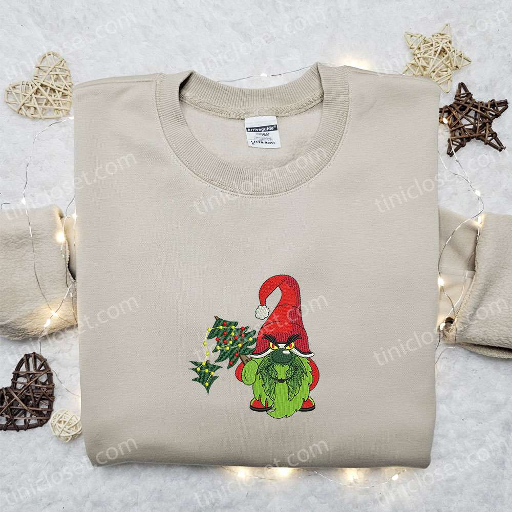 Gnome Grinch Christmas Embroidered Shirt, Christmas Embroidered T-shirt, Best Christmas Gift Ideas