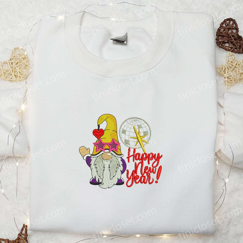 Gnome Happy New Year Embroidered T-shirt, Christmas Embroidered Sweatshirt, Best Christmas Gift Ideas For Family