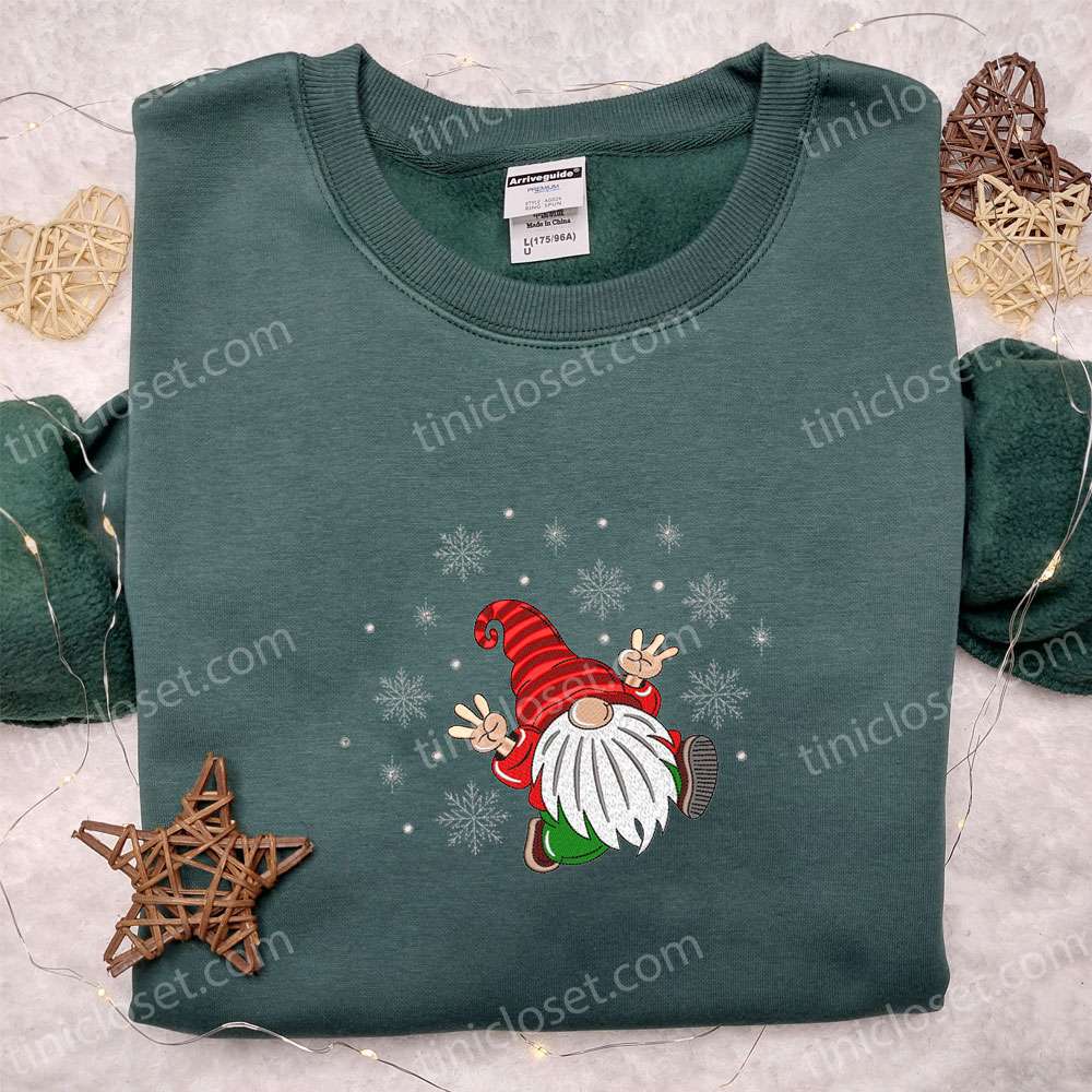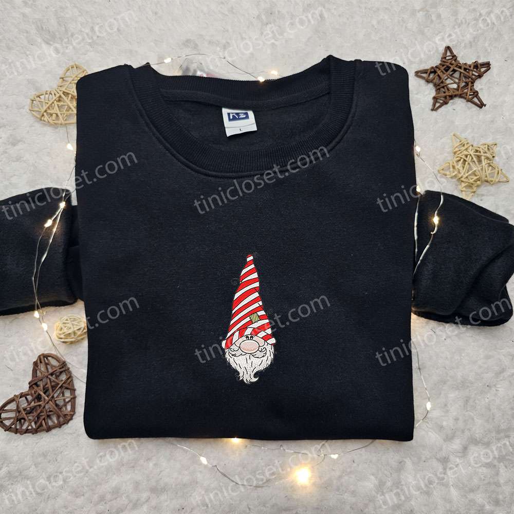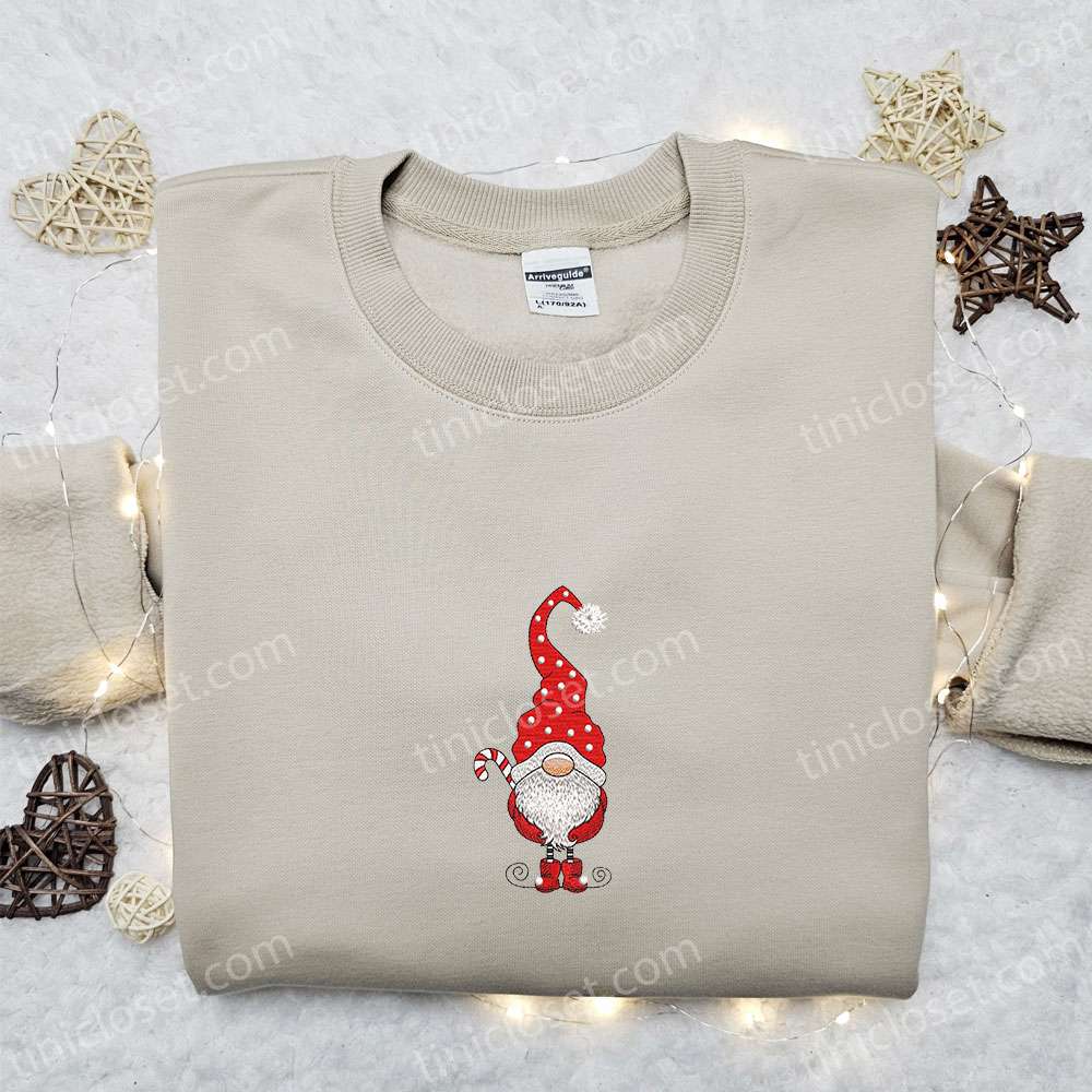 Gnome Santa Candy Cane Embroidered Hoodie, Cute Christmas Embroidered T-shirt, Best Christmas Gift Ideas