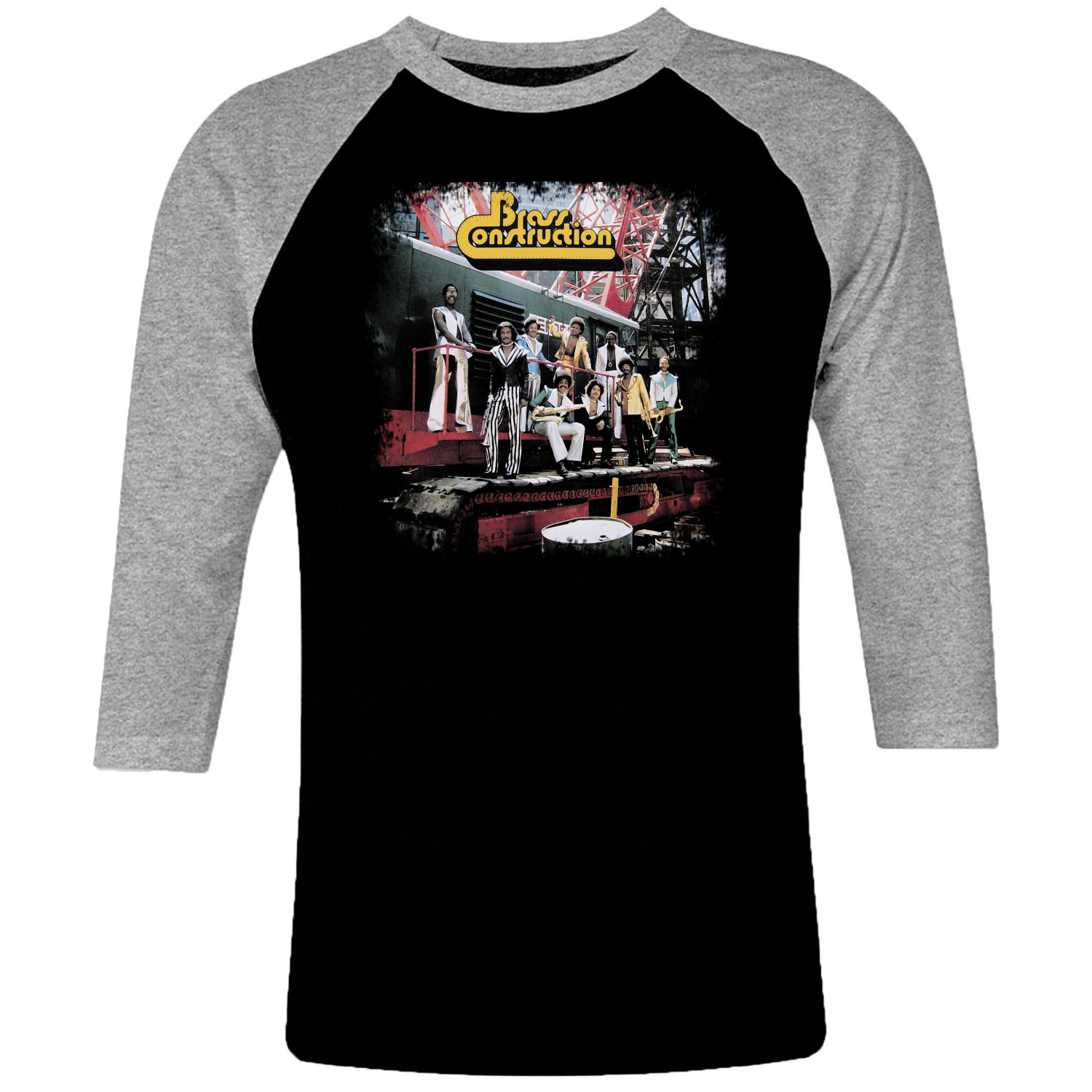 1 I 300 Brass Construction Raglan T Shirt 3 4 Sleeve Rock Band Metal Retro Punk Vintage Concert Cotton Design Handmade Logo New