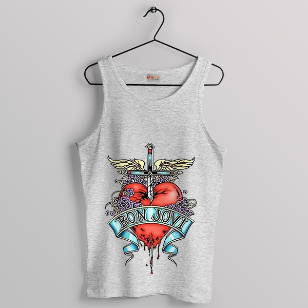 Graphic Shot Thru The Heart Bon Jovi Sport Grey Tank Top