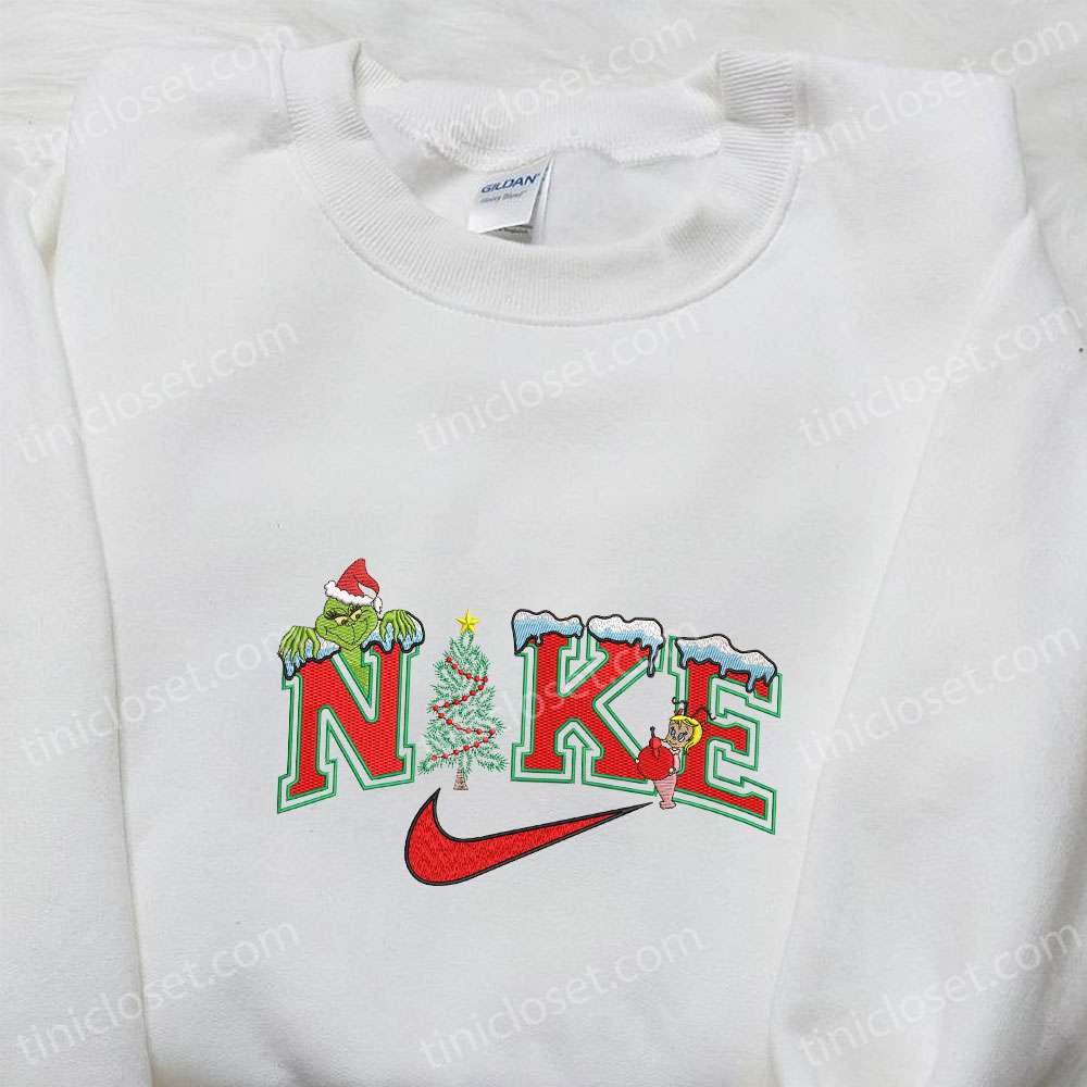 Grinch And Cindy Lou And Max X Nike Embroidered Shirt, Christmas Embroidered Hoodie, Best Gift Ideas