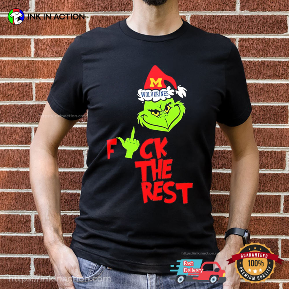 Grinch Hat Santa Michigan Wolverines Fuck The Rest Christmas Tee