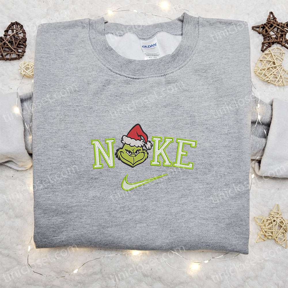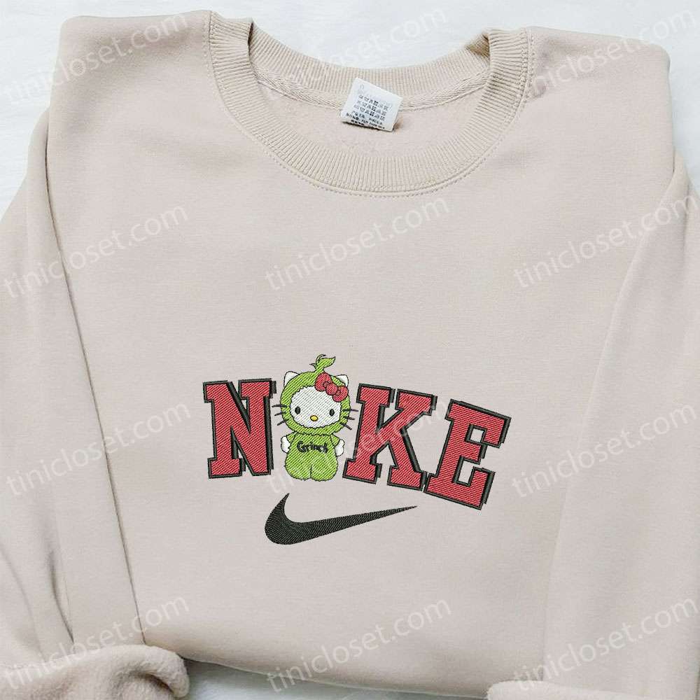 Grinch Hello Kitty Cartoon Christmas X Nike Embroidered Sweatshirt, Movie Merry Christmas Embroidered Shirt, Best Christmas Day Gift Ideas