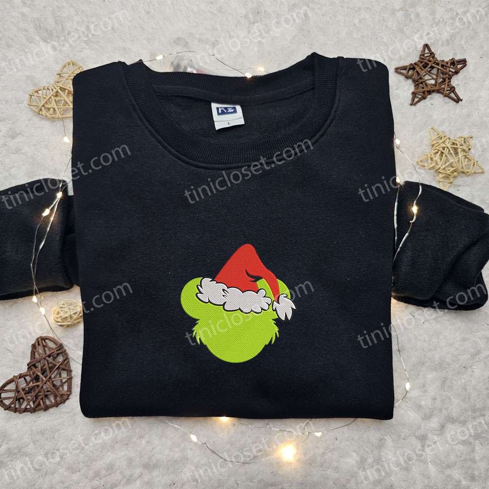 Grinch Head Santa Embroidered Hoodie, Christmas Embroidered Sweatshirt, Best Christmas Gift Ideas
