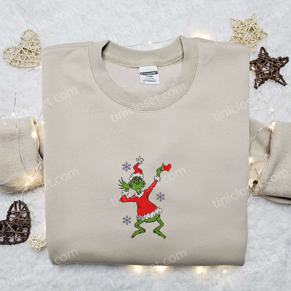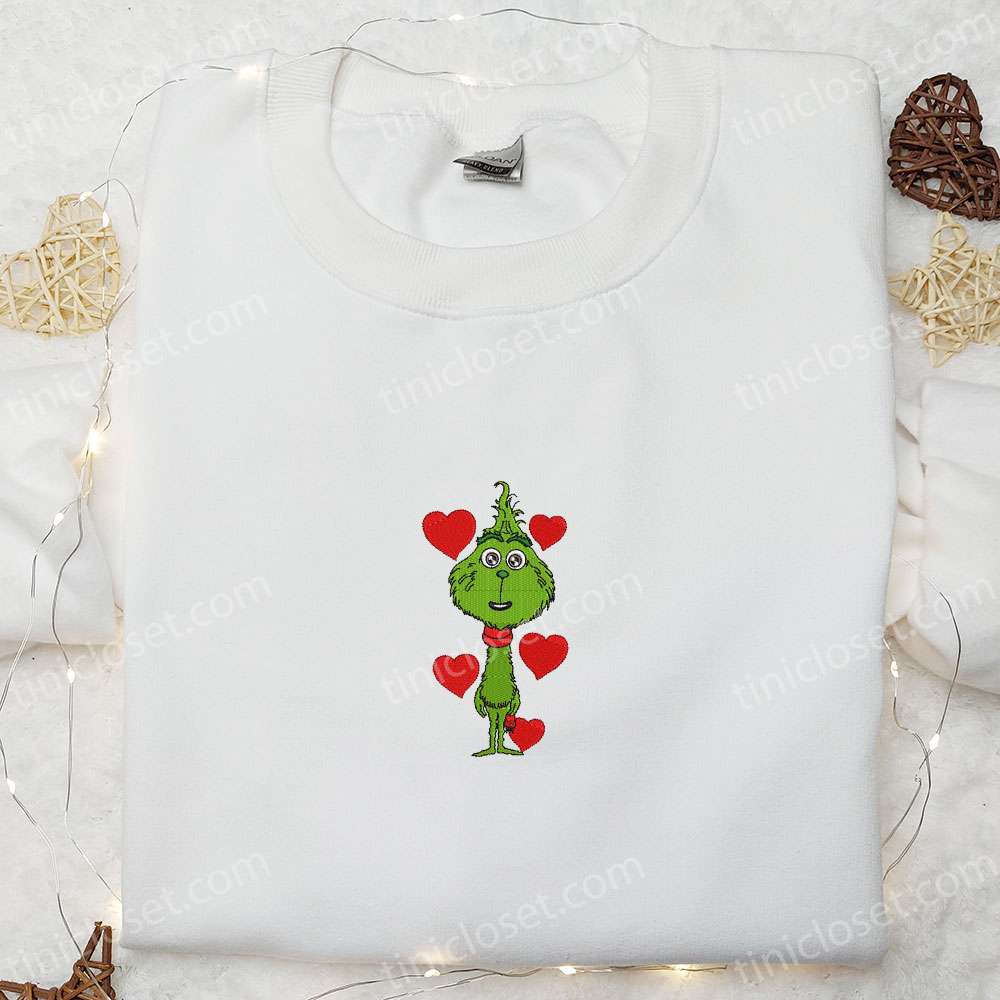 Grinch Heart Cute Embroidered Shirt, Christmas Embroidered Hoodie, Best Christmas Gift Ideas