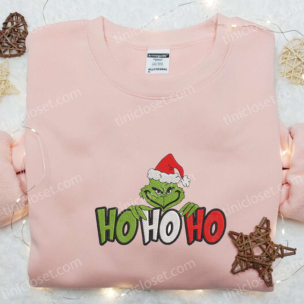 Grinch Ho Ho Ho Christmas Embroidered Hoodie, Christmas Embroidered T-shirt, Best Christmas Gift Ideas For Family