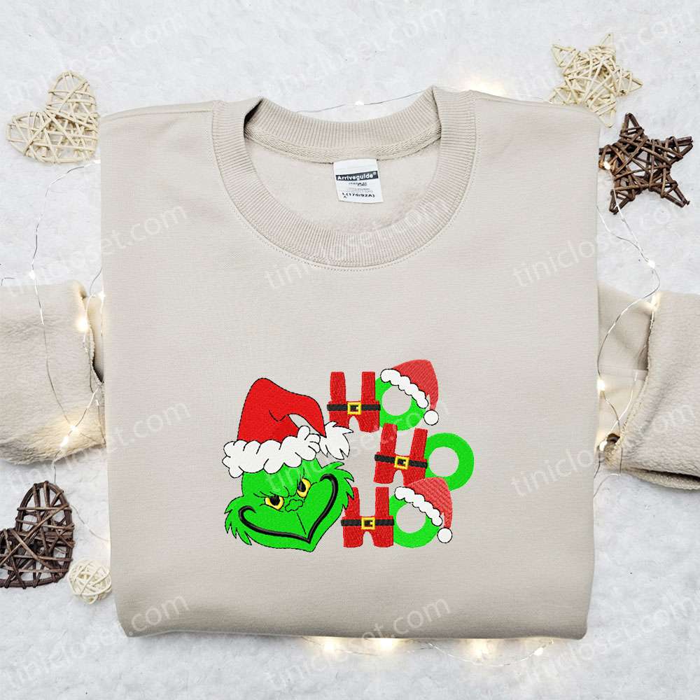 Grinch Ho Ho Ho Embroidered Shirt, Christmas Embroidered Hoodie, Best Gifts For Family