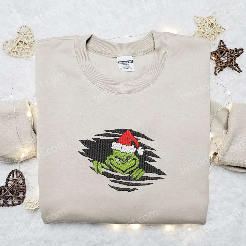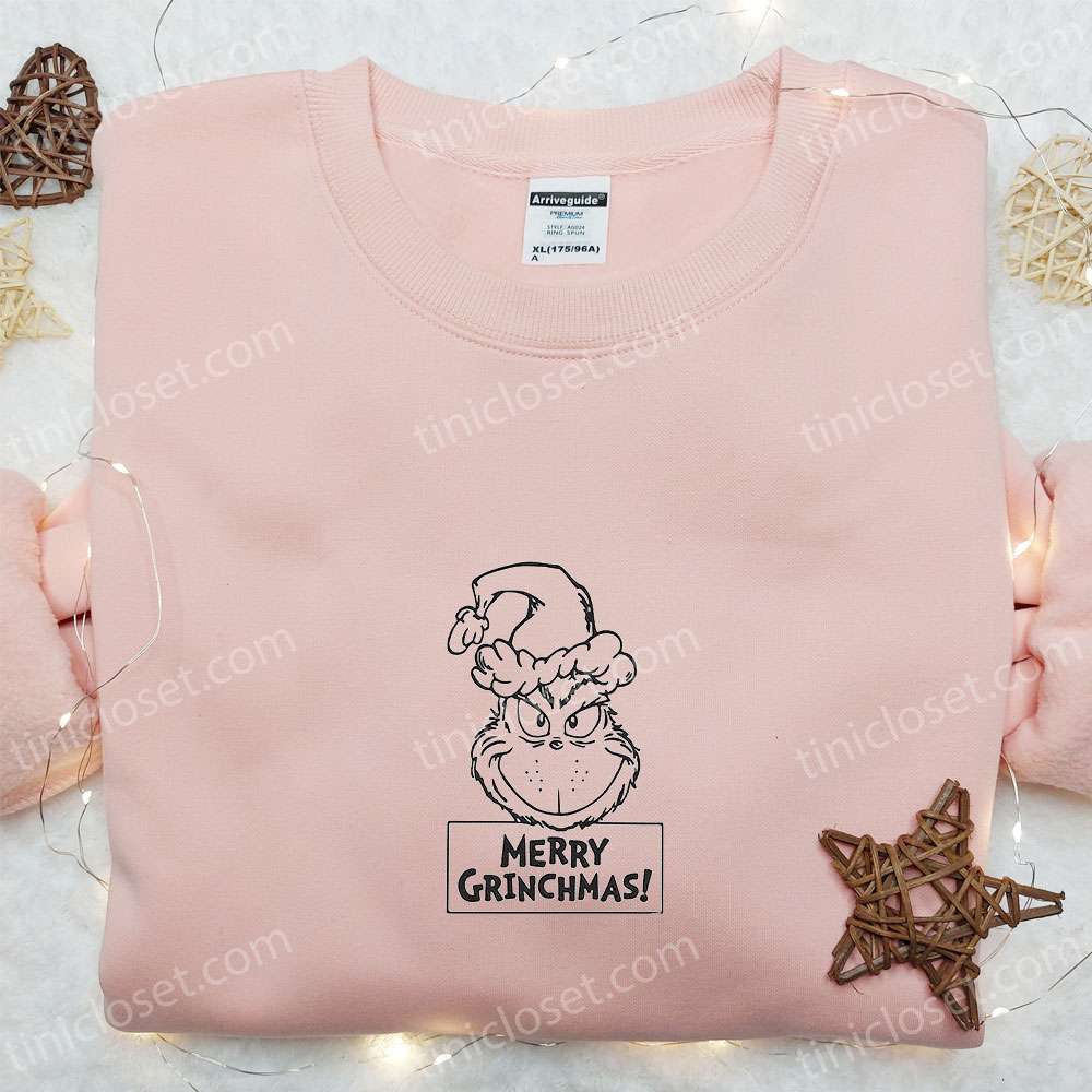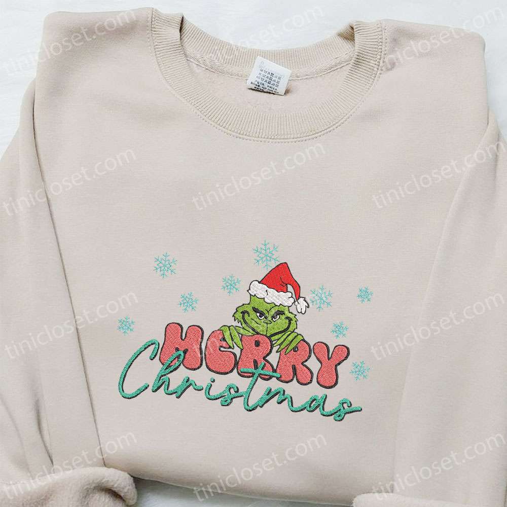 Grinch Merry Christmas Embroidered Shirt, Christmas Embroidered Hoodie, Best Gifts For Family