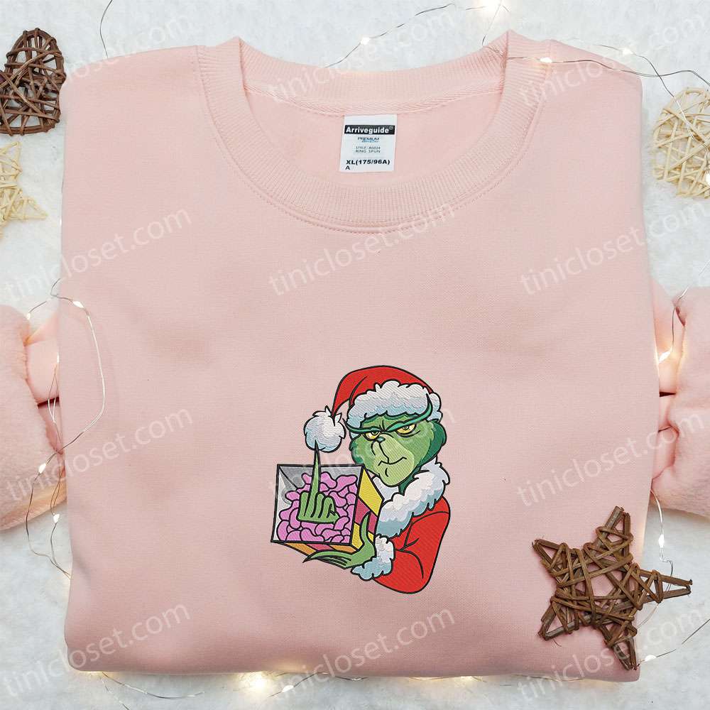 Grinch Middle Finger Christmas Embroidered Hoodie, Christmas Embroidered T-shirt, Best Christmas Gift Ideas