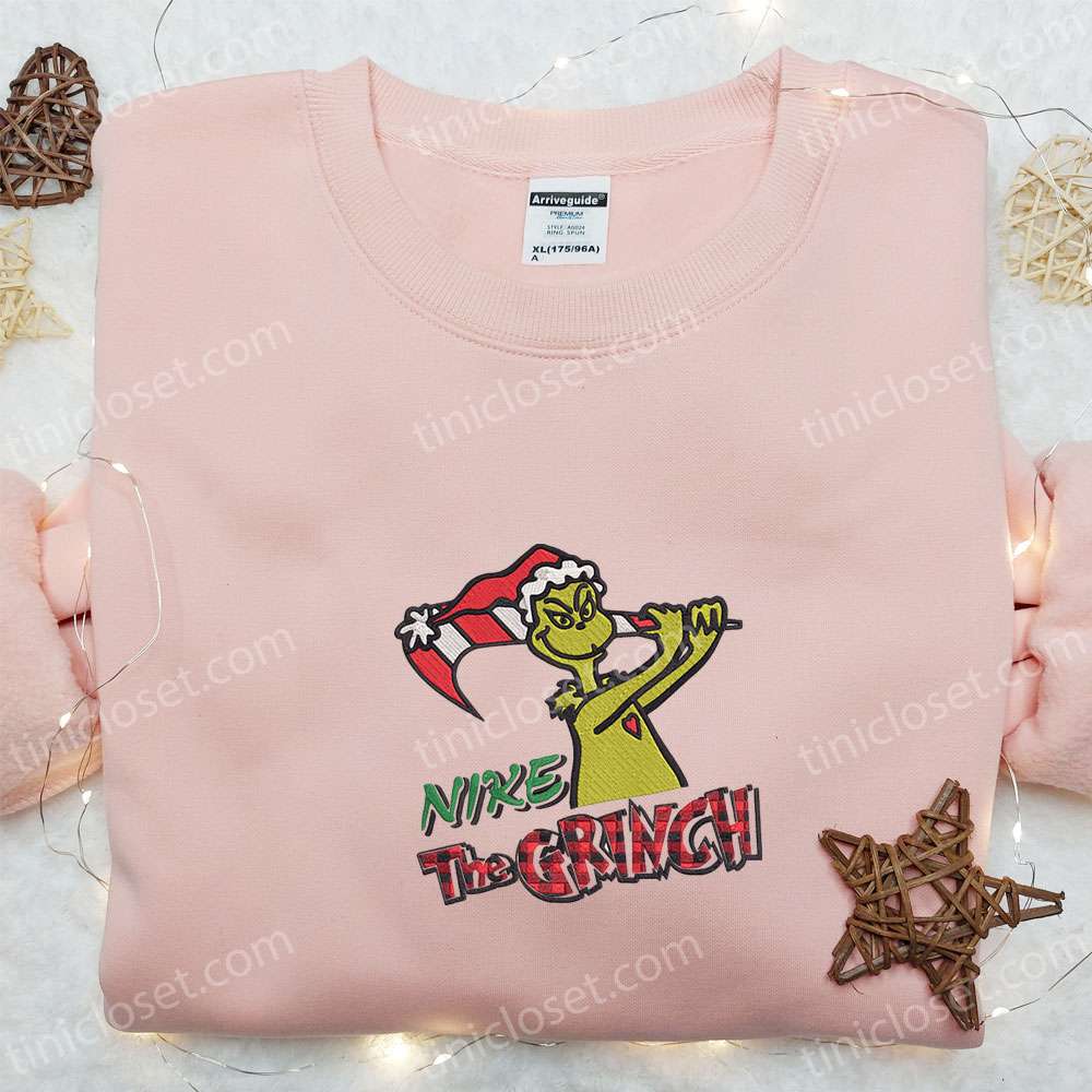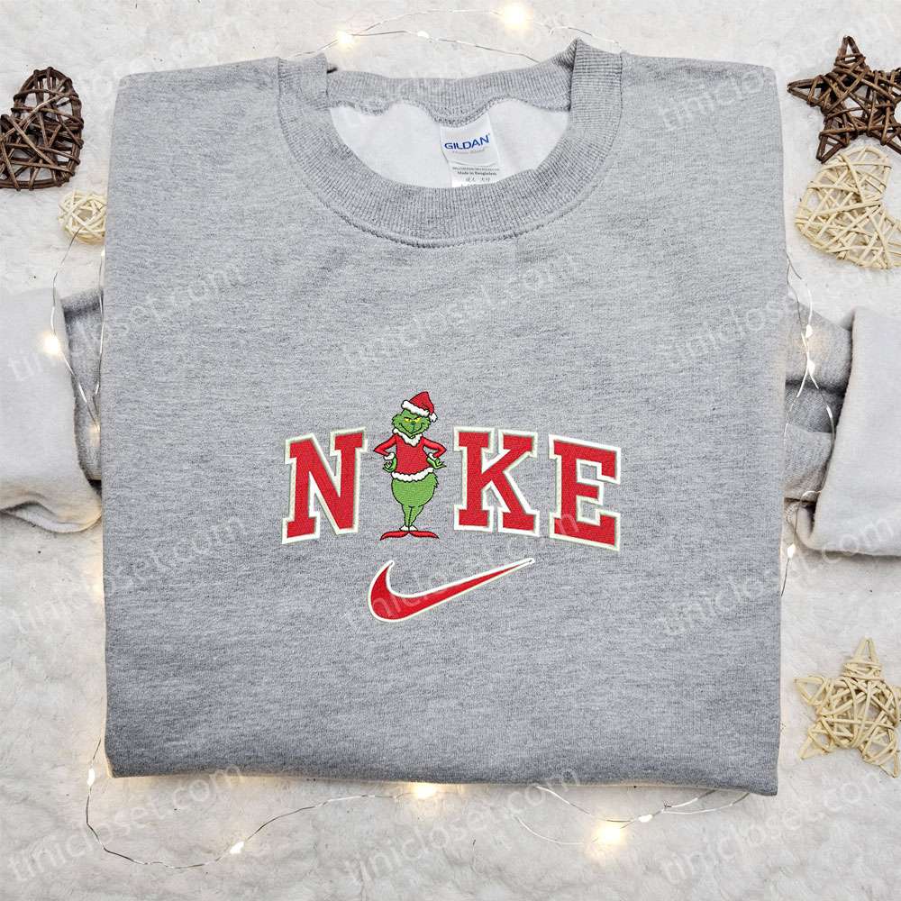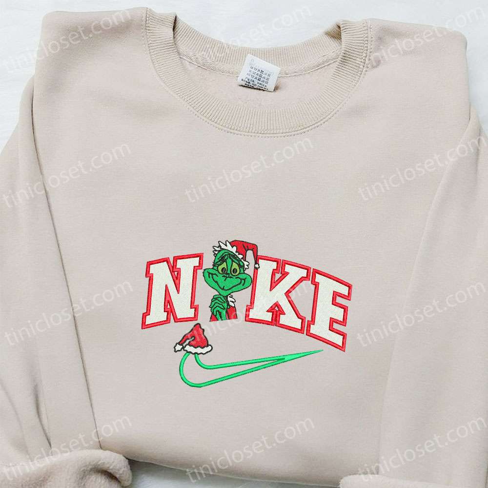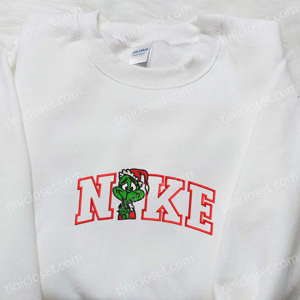 Grinch X Nike Embroidered Shirt, Christmas Embroidered Hoodie, Nike Inspired Embroidered Sweatshirt