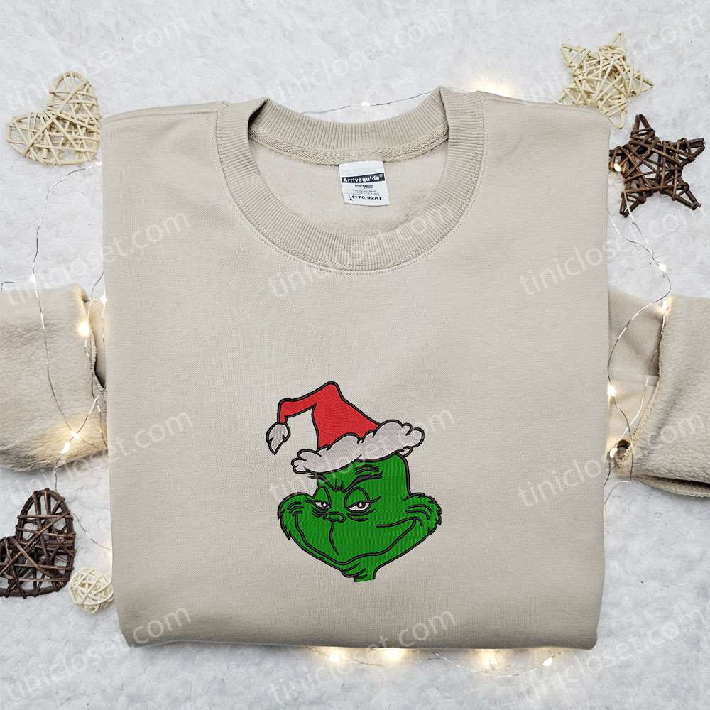 Grinch Xmas Hat Embroidered T-shirt, Movie Christmas Embroidered T-shirt, Best Christmas Gift Ideas