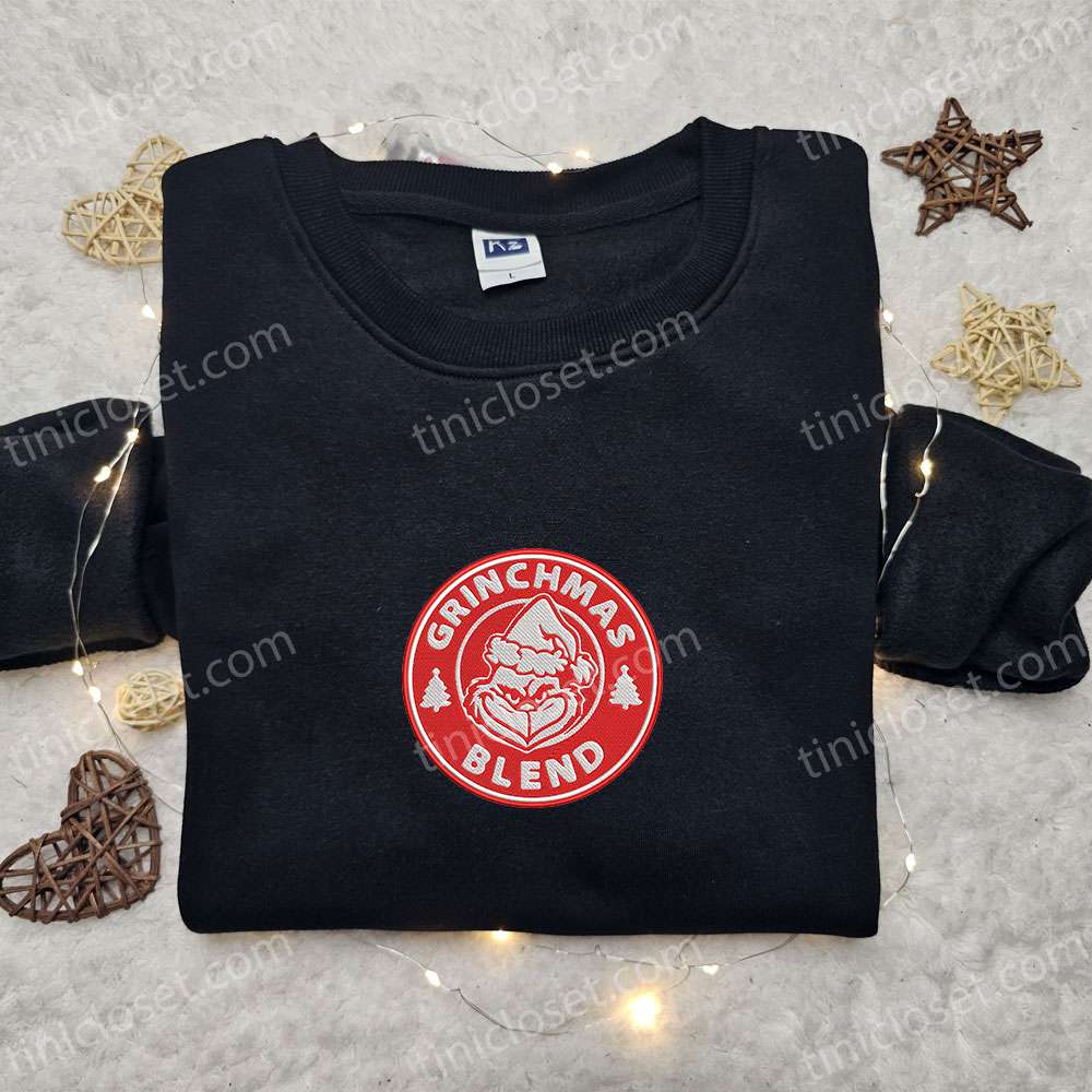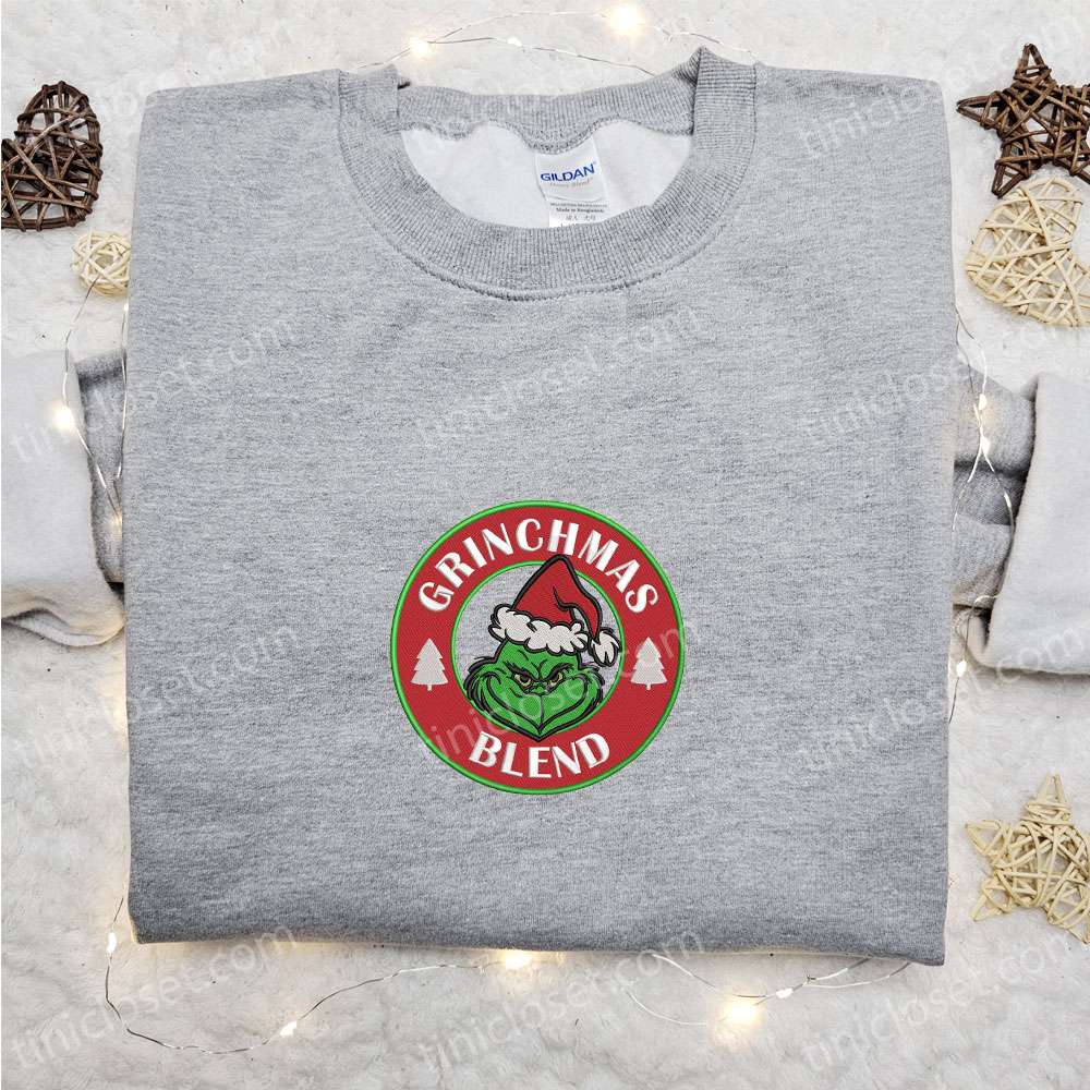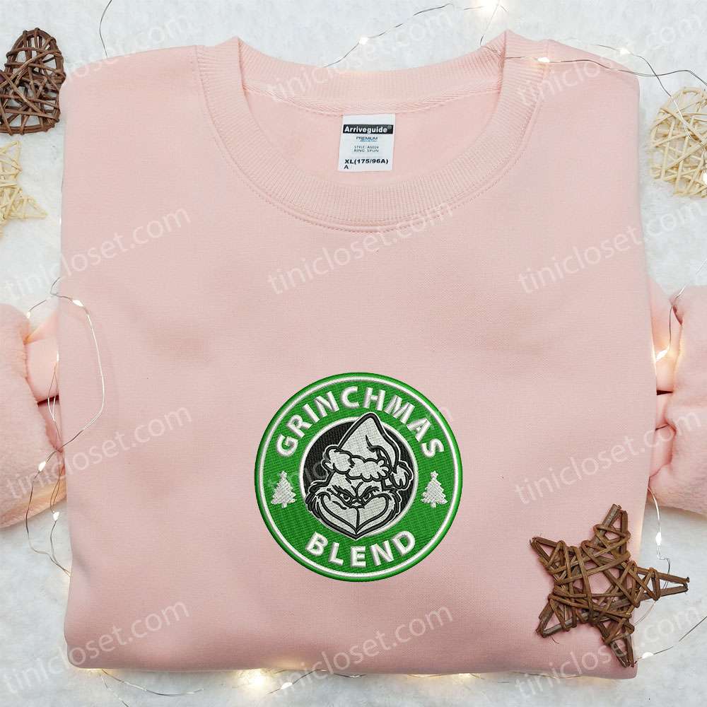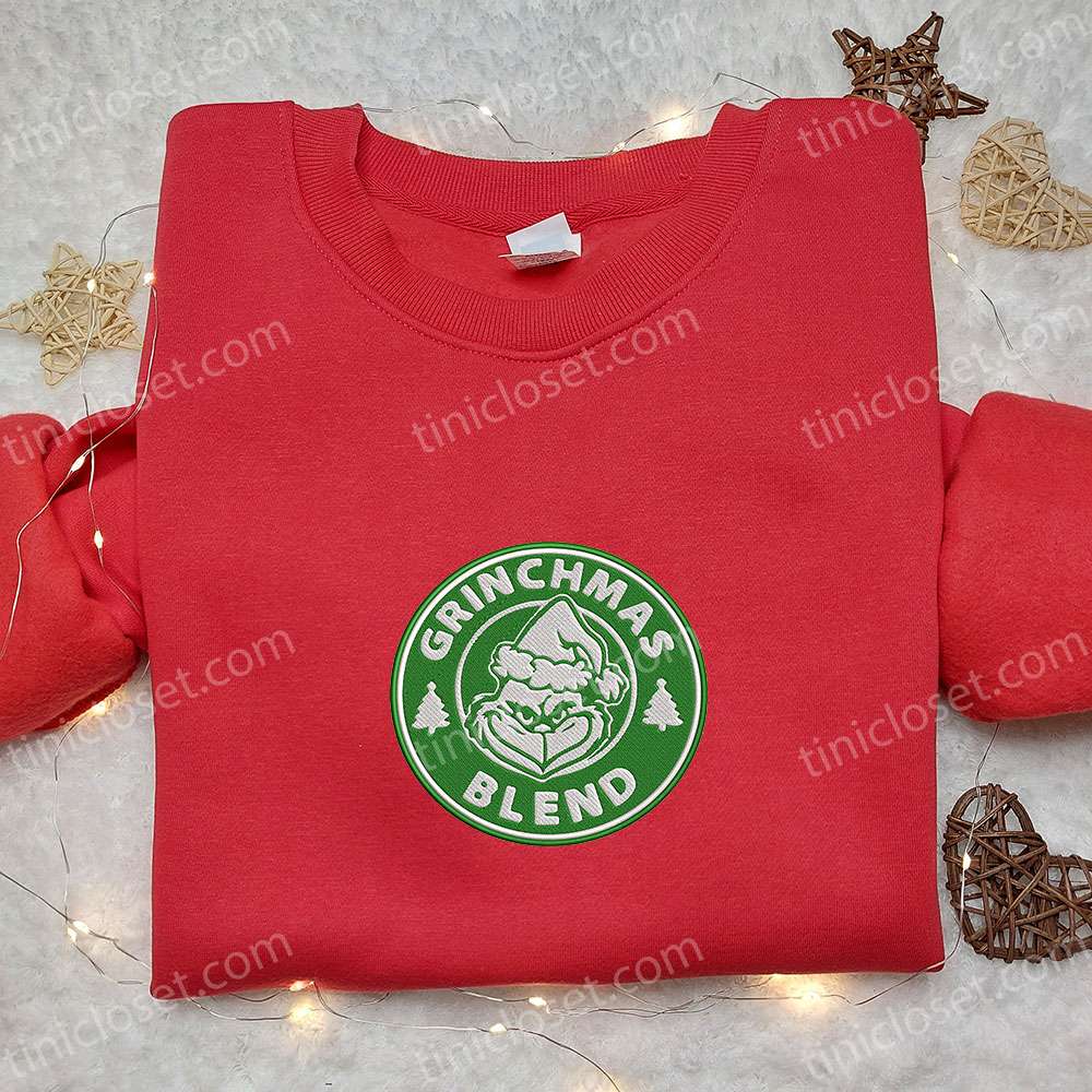 Grinchmas Blend Starbucks Embroidered Hoodie, Favorite Drink Christmas Embroidered T-shirt, Best Christmas Gift Ideas