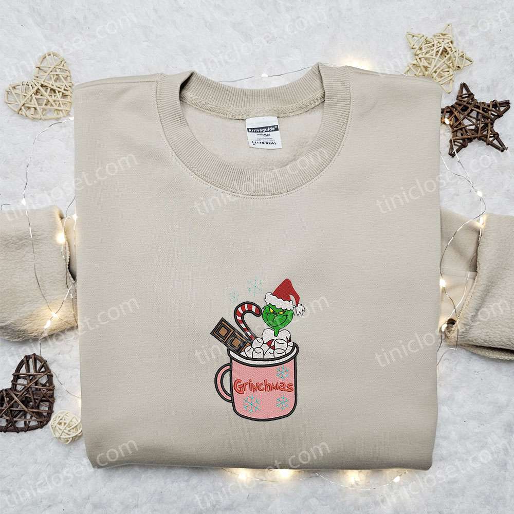 Grinchmas Coffee Latte Embroidered Shirt, Christmas Embroidered Hoodie, Best Christmas Gift Ideas For Family