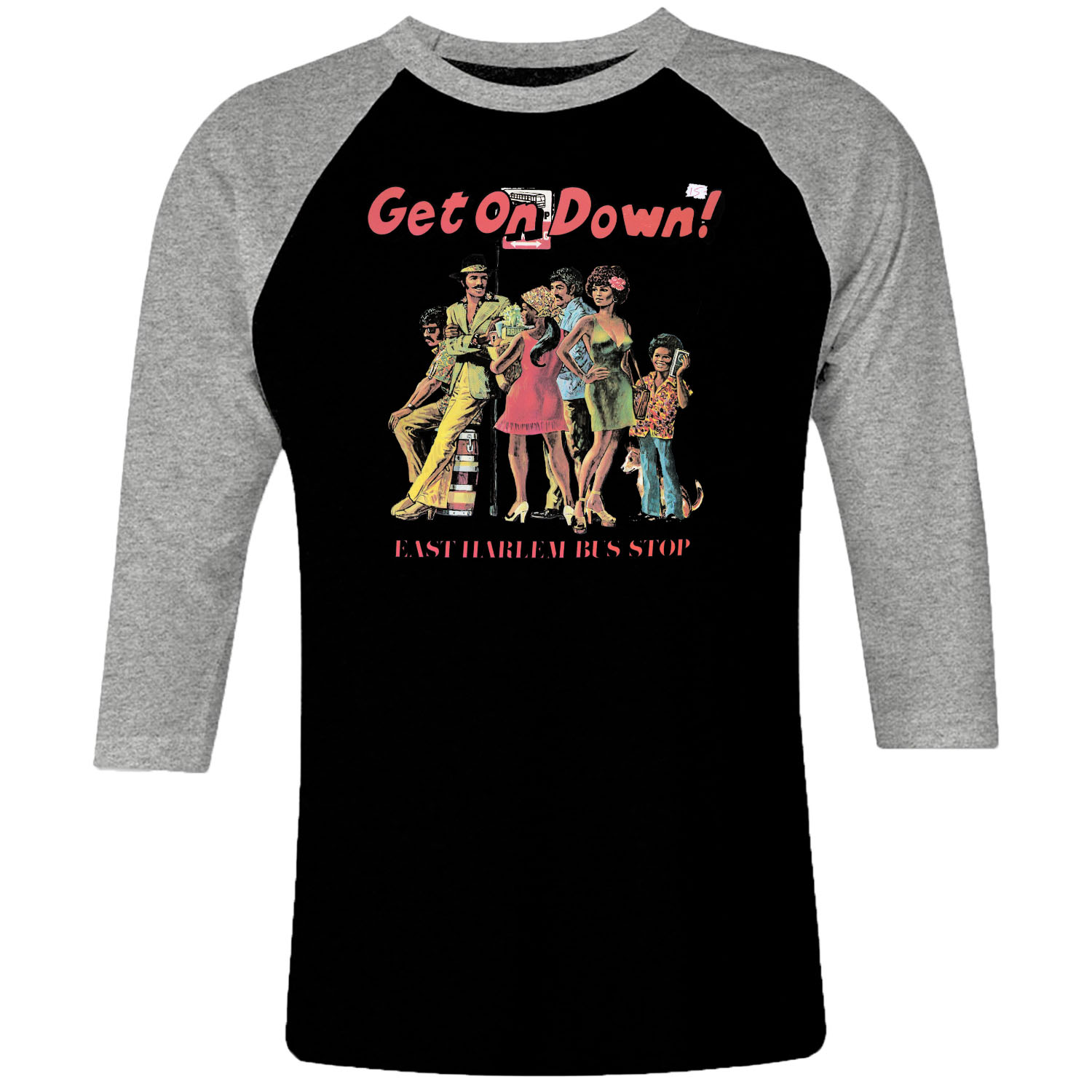 1 I 338 East Harlem Bus Stop Get On Down 1976 Raglan T Shirt 3 4 Sleeve Rock Band Metal Retro Punk Vintage Concert Cotton Design Handmade Logo New