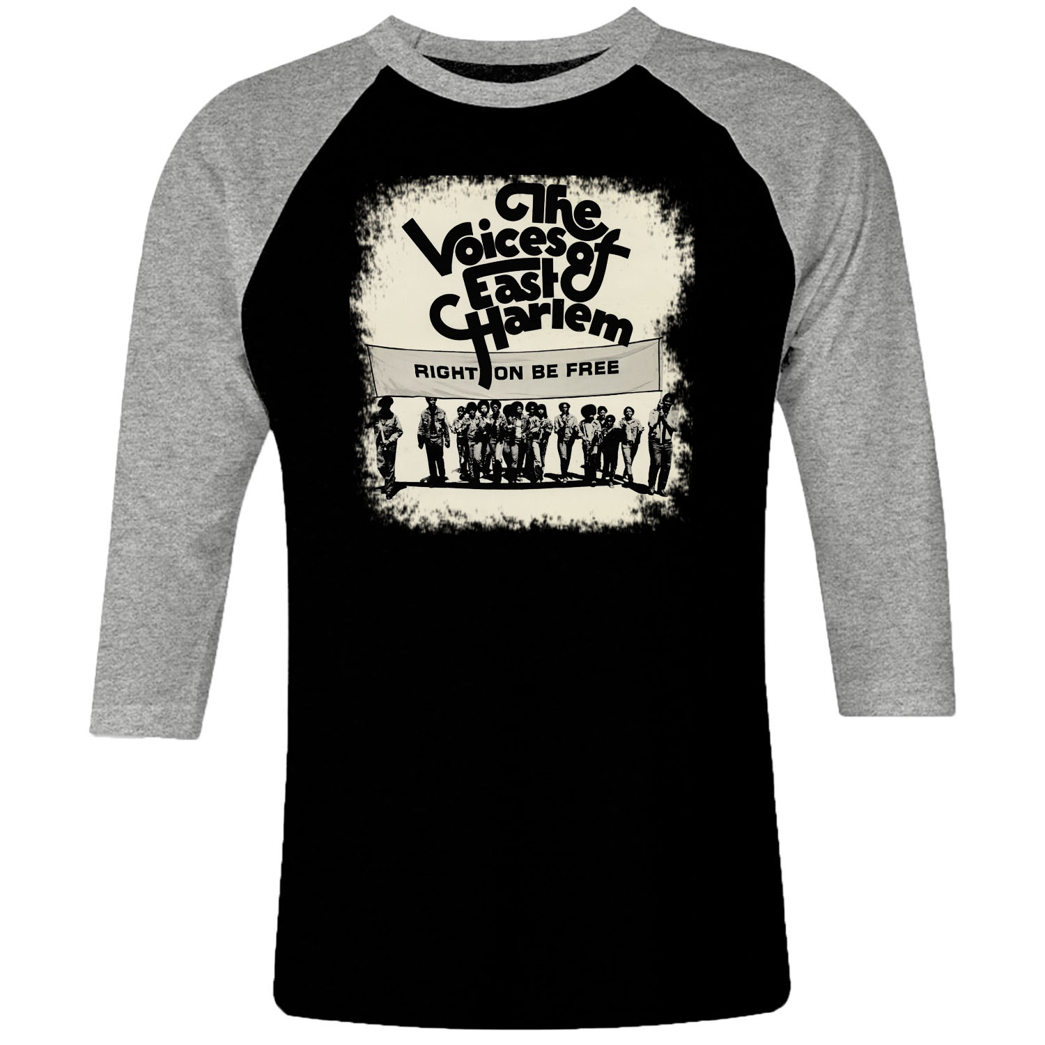 1 I 339 East Harlem The Voice Of Right On Be Free Raglan T Shirt 3 4 Sleeve Rock Band Metal Retro Punk Vintage Concert Cotton Design Handmade Logo New