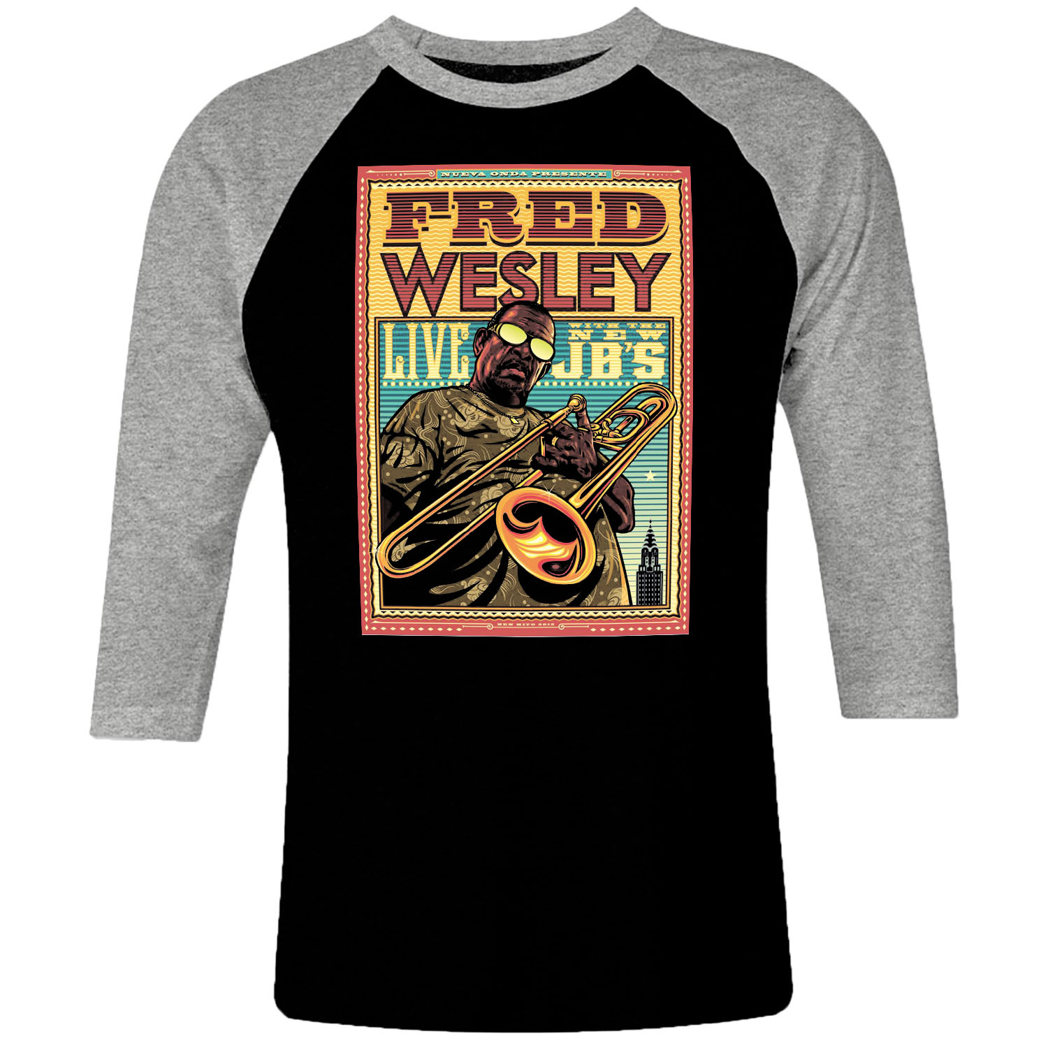 1 I 348 Fred Wesley Trombonist Raglan T Shirt 3 4 Sleeve Rock Band Metal Retro Punk Vintage Concert Cotton Design Handmade Logo New