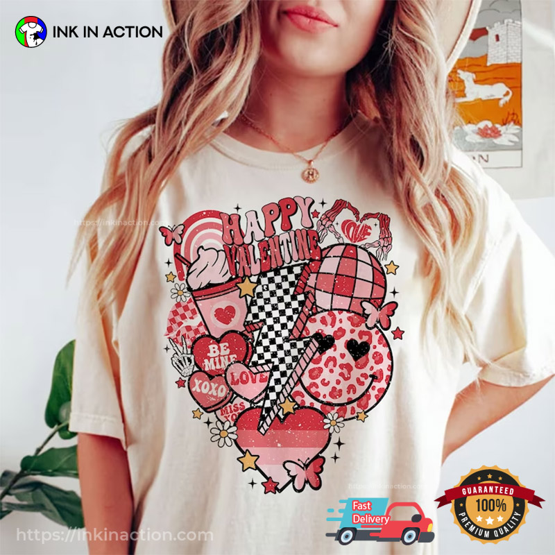Happy Valentine Groovy 90s Vintage Style T-shirt