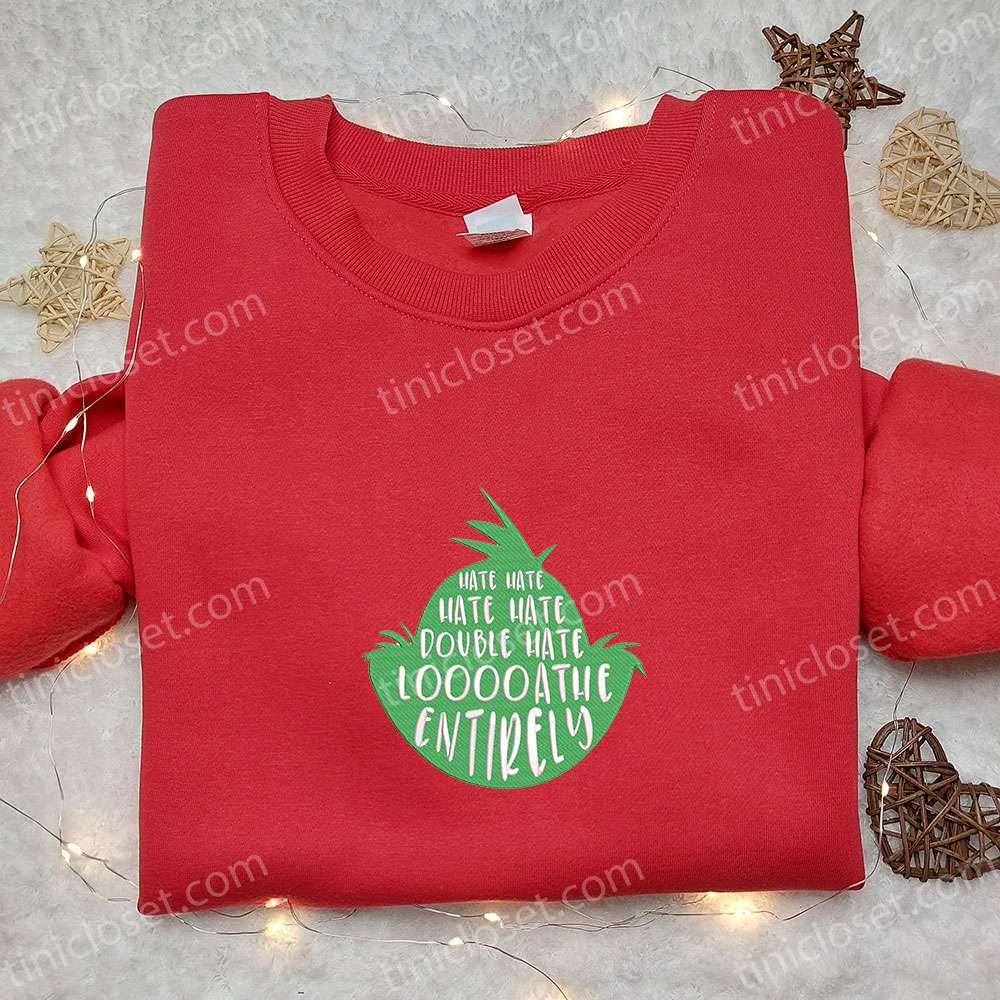 Hate Hate Hate Double Hate Loathe Entirely Grinch Embroidered Shirt, Christmas Embroidered Hoodie, Best Gifts For Family