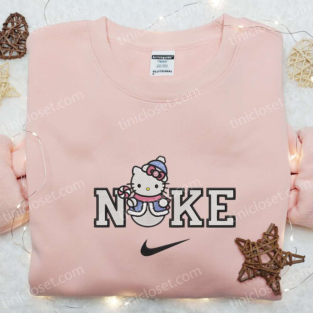 Hello Kitty Snowman X Nike Embroidered Shirt, Christmas Embroidered Hoodie, Nike Inspired Embroidered Sweatshirt