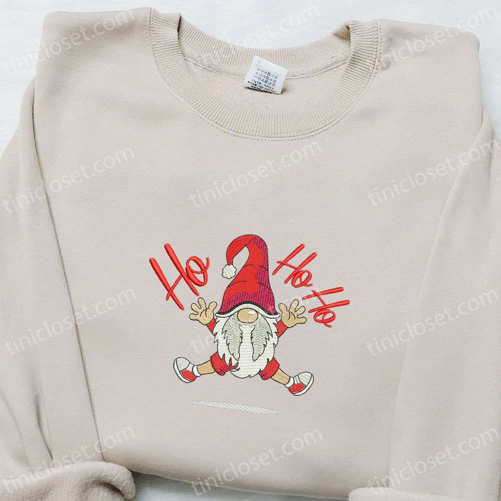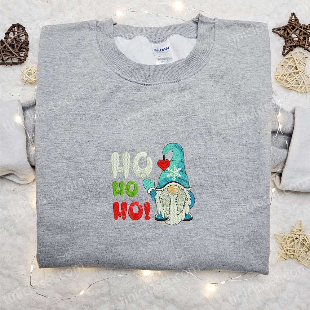 Ho Ho Ho Gnome Embroidered Shirt, Christmas Embroidered Hoodie, Best Gifts For Family