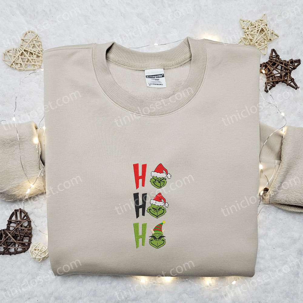 Ho Ho Ho Grinch Embroidered Shirt, Christmas Embroidered Hoodie, Best Christmas Gifts For Family