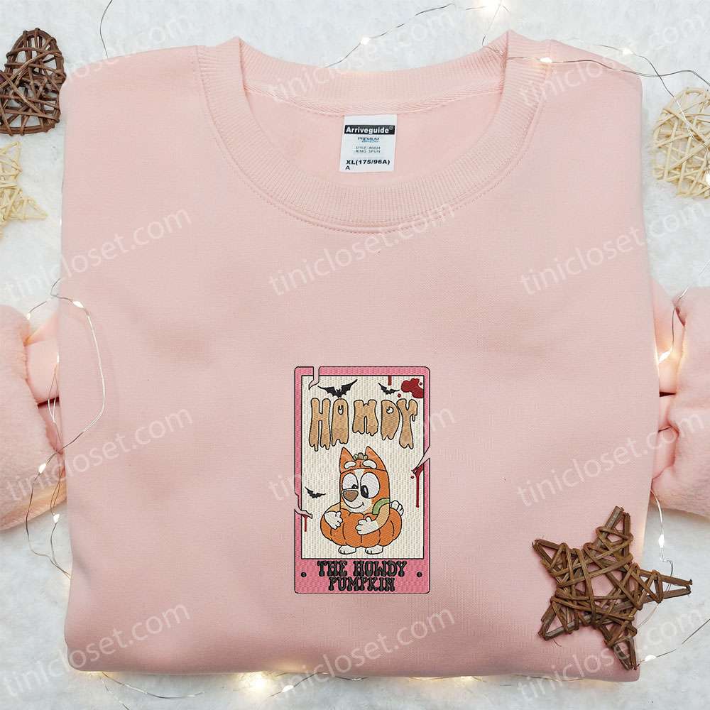 Howdy Pumpkin Embroidered Shirt, The Bluey Halloween Embroidered T-shirt, Best Halloween Gift Ideas
