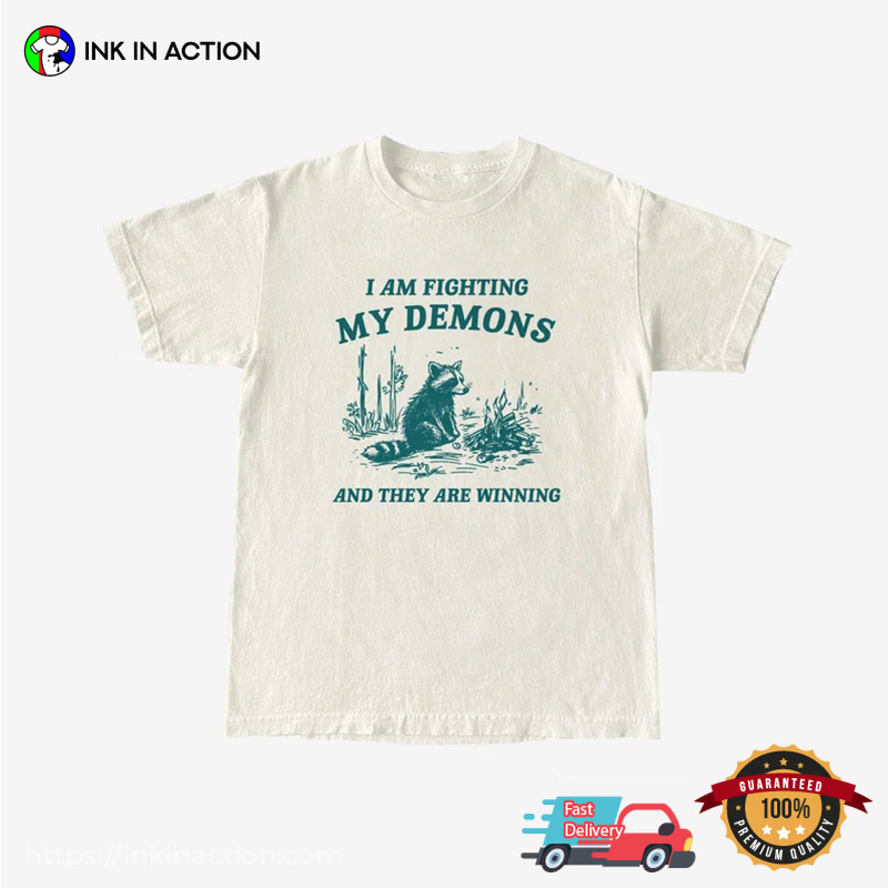I Am Fighting My Demon And They Are Winning Retro Raccoon Meme T-shirt
