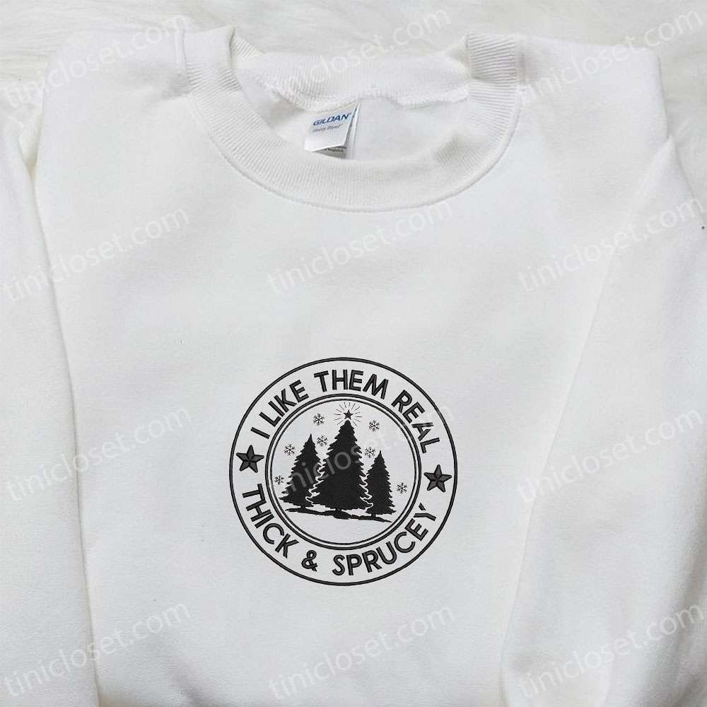 I Like Them Real Thick And Sprucey Embroidered Shirt, Christmas Embroidered Hoodie, Best Gifts For Family
