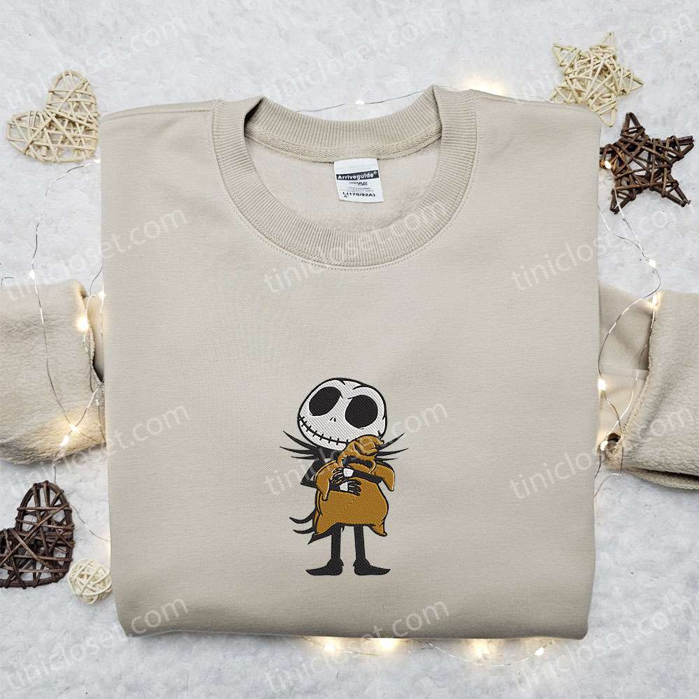 Jack Skellington Ghost Xmas Embroidered Hoodie, The Nightmare Before Christmas Movie Christmas Embroidered Shirt, Best Christmas Gift Ideas