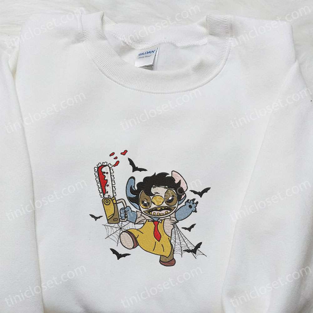 Leatherface Stitch Embroidered T-shirt, Lilo And Stitch Disney Embroidered Hoodie, Best Gift Ideas For Family