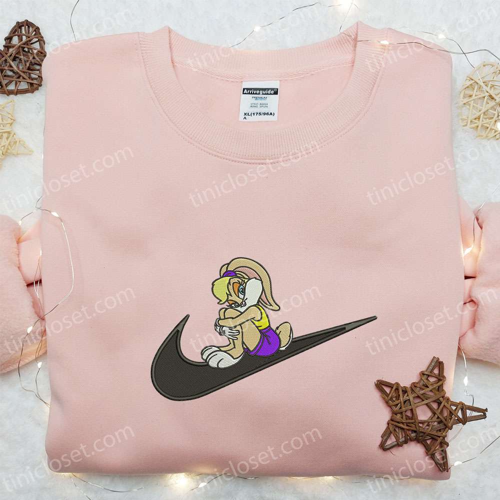 Lola Bunny X Nike Swoosh Embroidered Shirt, Disney Looney Tunes Embroidered Hoodie, Cartoon Embroidered Sweatshirt