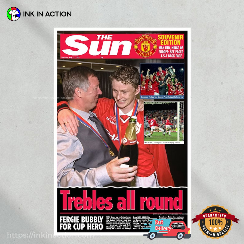 1999 Manchester United Fc Treble Winners Poster