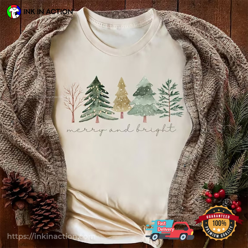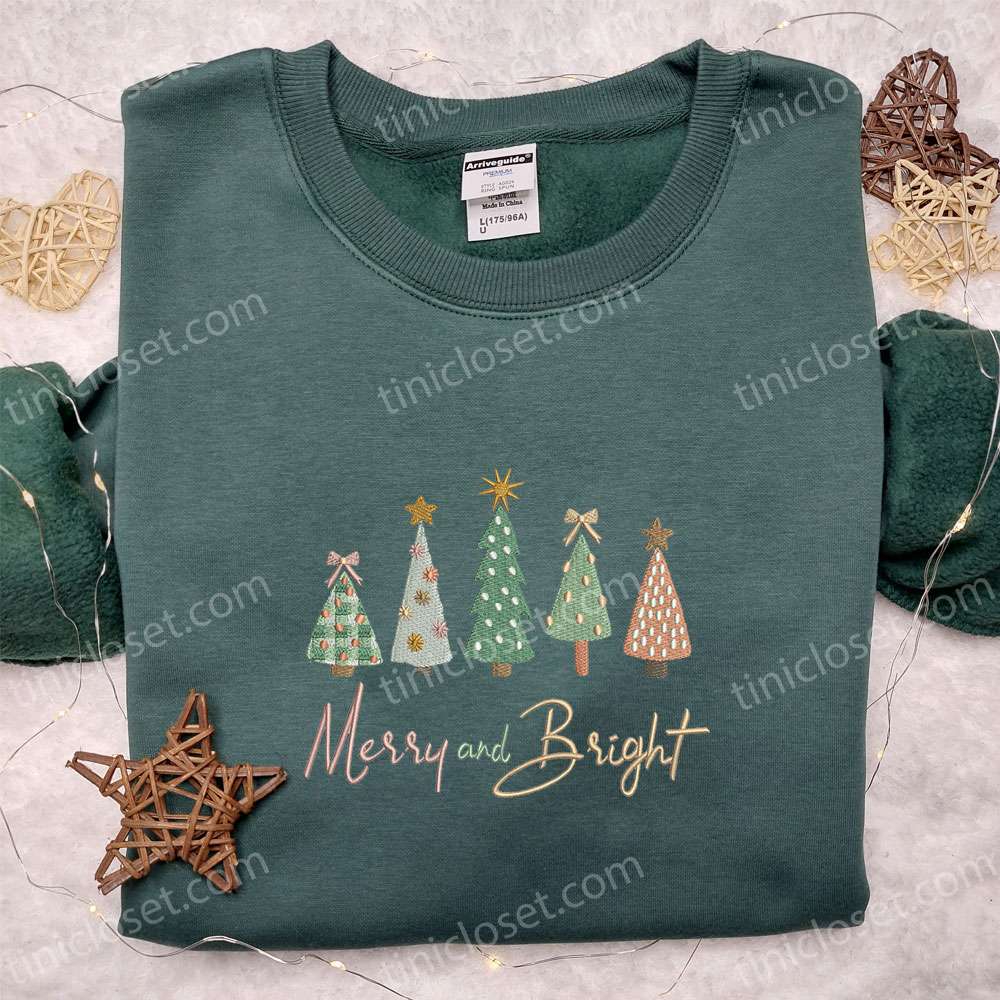 Merry And Bright Christmas Trees Embroidered Shirt, Christmas Embroidered Hoodie, Best Christmas Gifts For Family