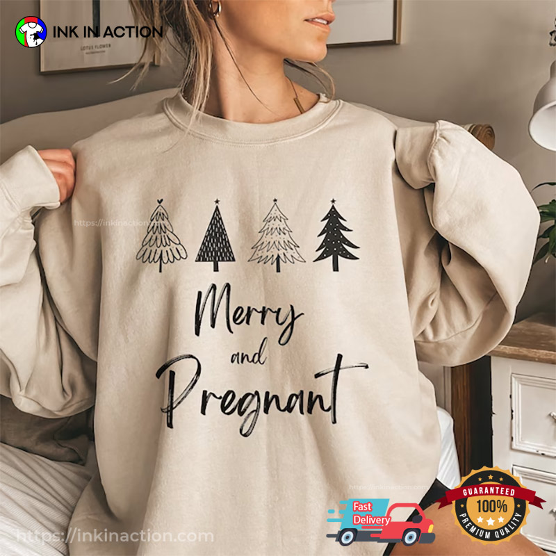 Merry And Pregnant Xmas Tree Vintage Tee Shirt