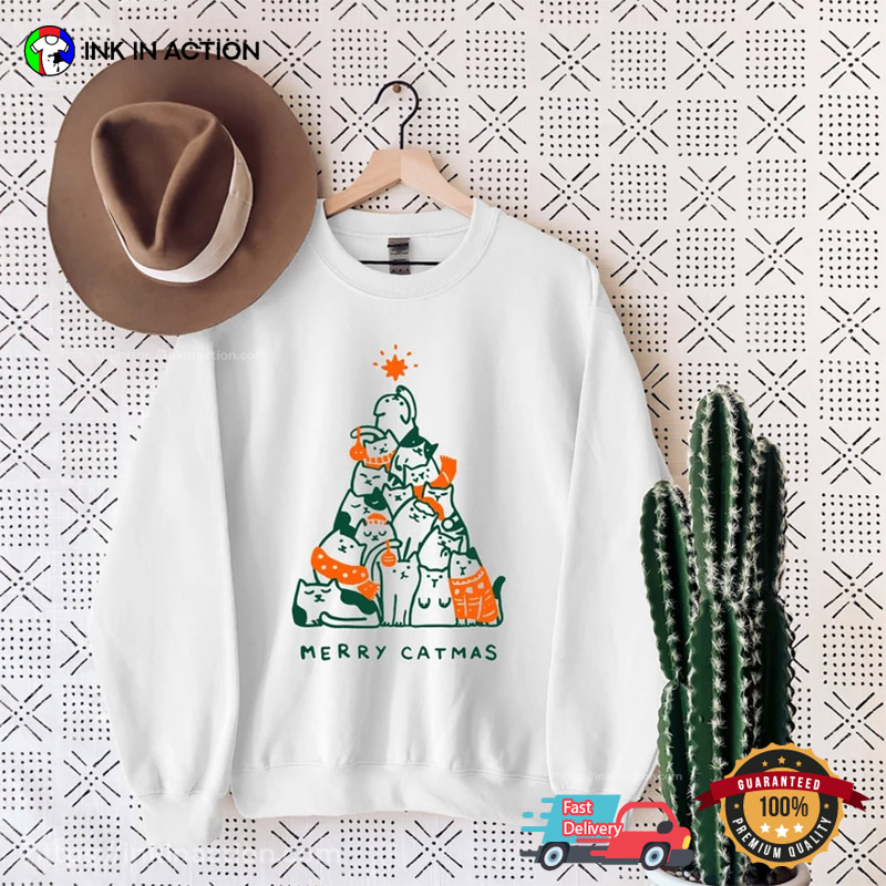 Merry Catmas Cute Cats Xmas Tree Vacation T-shirt