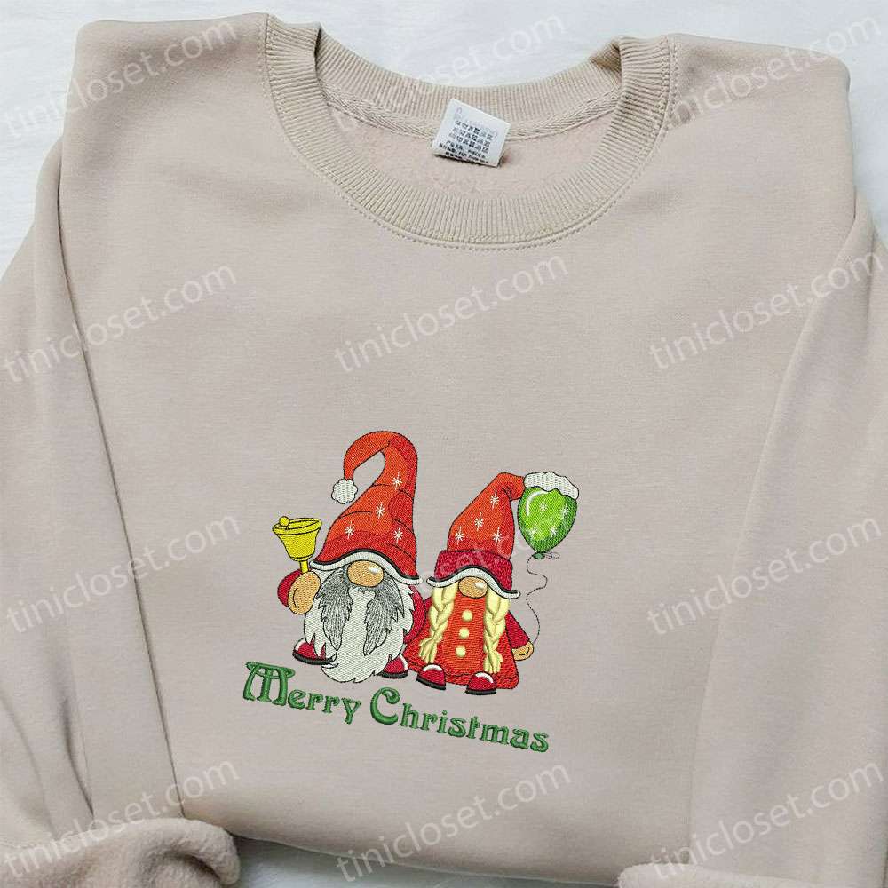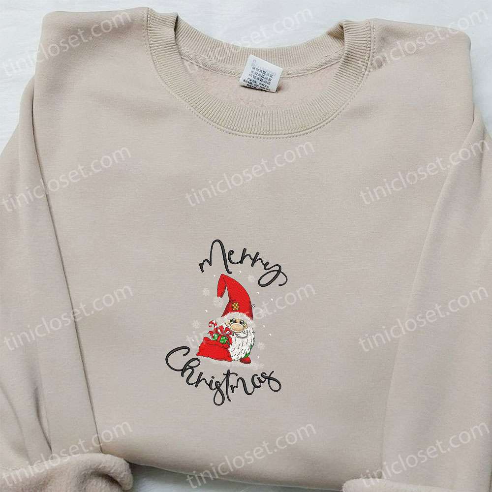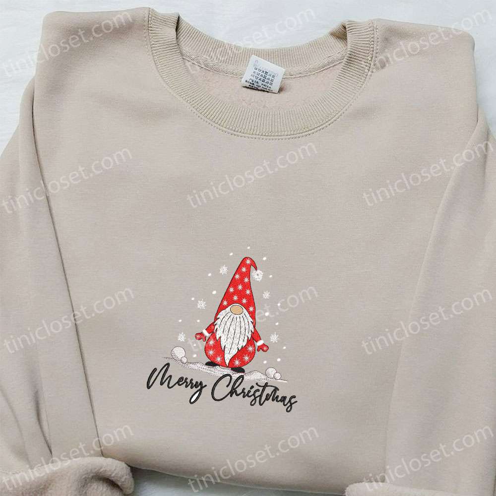 Merry Christmas Gnome Embroidered Shirt, Christmas Embroidered Hoodie, Best Christmas Gifts For Family