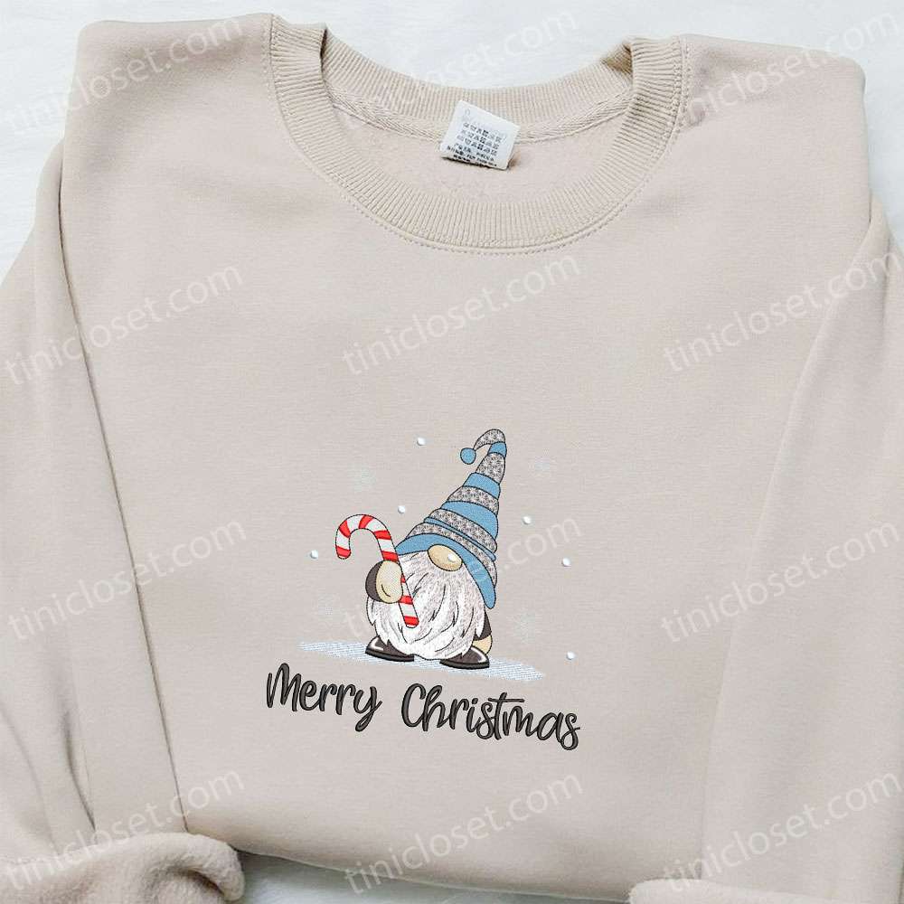 Merry Christmas Gnome Candy Cane Embroidered Shirt, Christmas Embroidered Hoodie, Best Christmas Gifts For Family