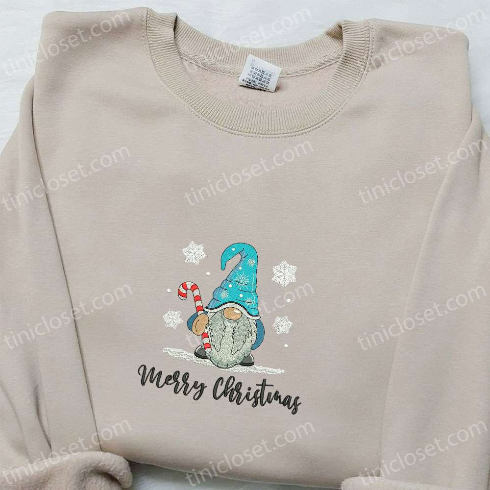 Merry Christmas Gnome Snow Candy Cane Embroidered Shirt, Christmas Embroidered Hoodie, Best Christmas Gifts For Family