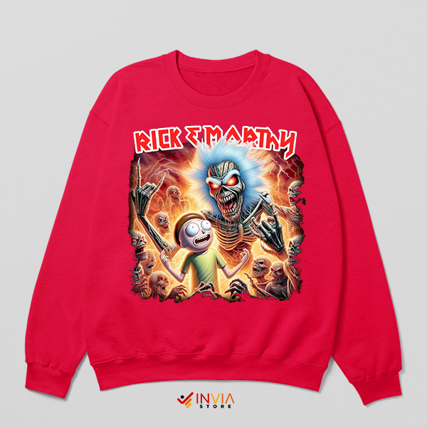 Metalhead Meets Rick Morty Maiden Red Sweatshirt