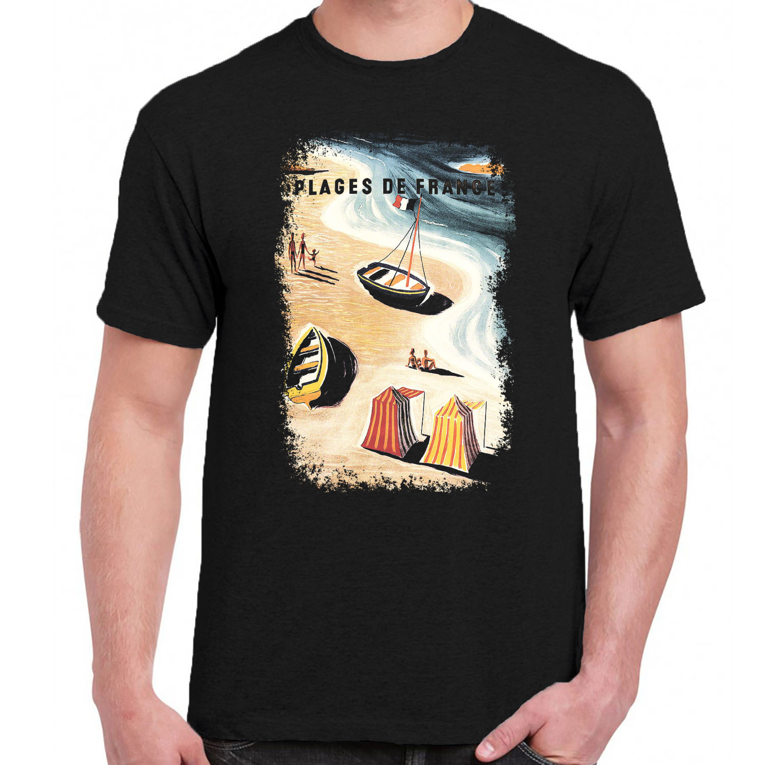 1cp A 080 Plage De France Poster T Shirt Retro Vintage Tshirts Shirt T Shirts For Men Classic Cotton Design Handmade Logo New