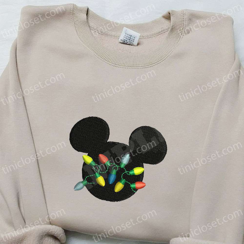 Mickey Logo Christmas Tangled Lights Embroidered Shirt, Disney Characters Embroidered Hoodie, Best Christmas Gifts For Family