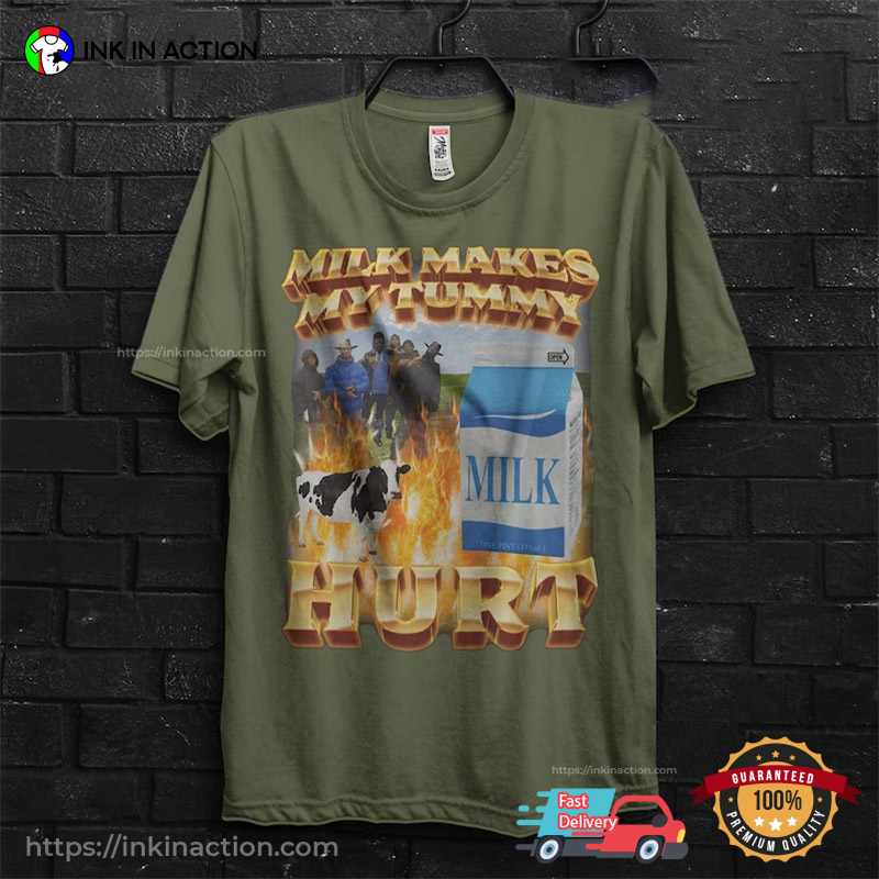 Milk Makes My Tummy Hurt Lactose Tolerant Funny Meme Shirts