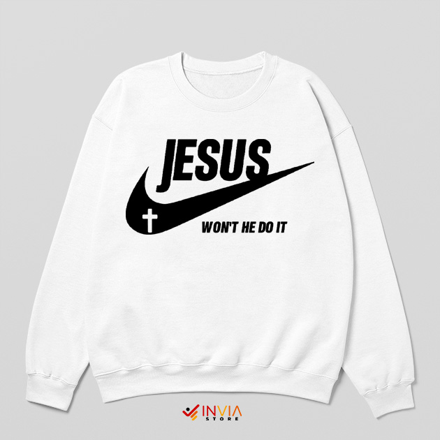 My Jesus Nike Won’t He Do It White Sweatshirt