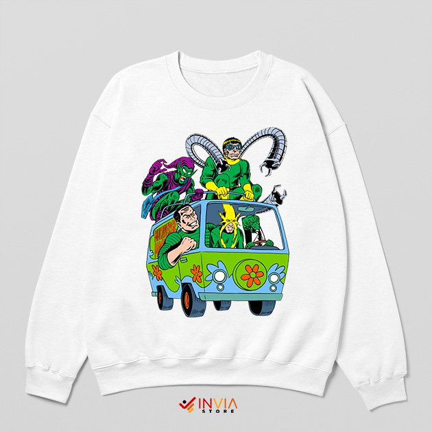 Mystery Machine Van Villains Spider Man White Sweatshirt