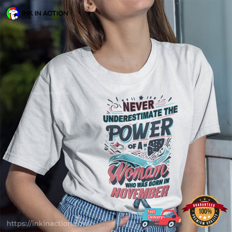 Never Underestimate A Woman Born In November Birthday Tee Shirts