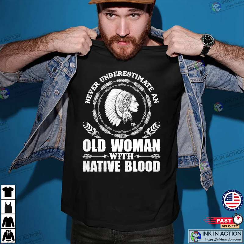 Never Underestimate An Old Woman With Native Blood T-shirt
